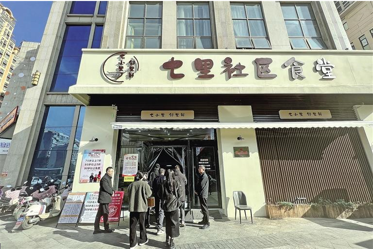 1月6日12时,海韵晶城小区党群服务站旁的七里社区食堂里坐满了前来用餐的群众。“社区食堂的菜品每天不重样,只要6元就能吃饱,比自己做饭方便。”小区居民王海寿说。