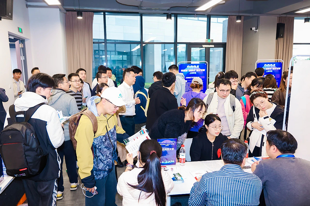 来自上海交通大学、华东理工大学、上海大学等学校的毕业生穿梭于各招聘展位之间,与用人单位交流,询问岗位需求、薪资待遇和职业发展前景。