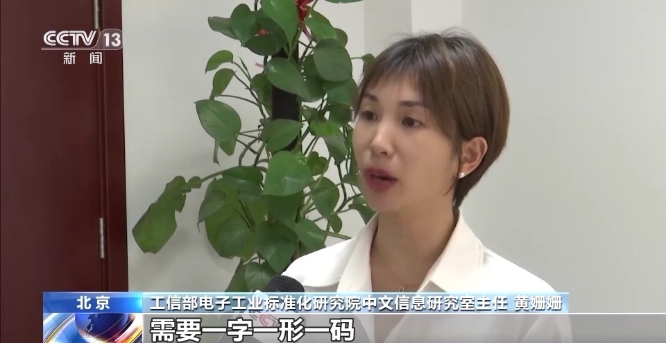 工信部电子工业标准化研究院中文信息研究室主任 黄姗姗:信息系统它要识别和输出汉字需要一字一形一码,一个字它要对应一个编码,然后再有对应的字形才能够正确的处理一个汉字。