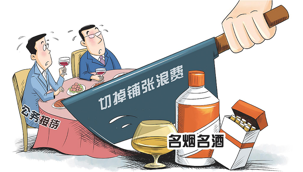 今年5月,修订后的《党政机关厉行节约反对浪费条例》颁布施行,其中明确规定:“工作餐不得提供高档菜肴,不得提供香烟,不上酒。”