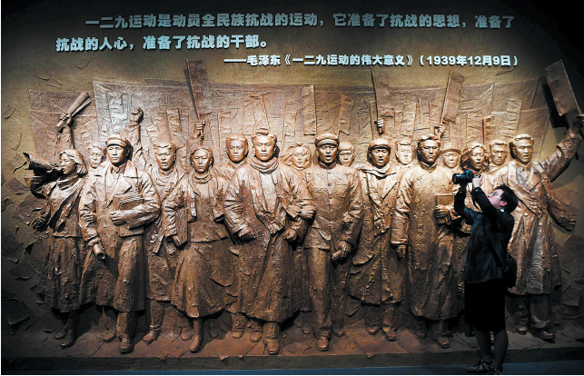 历史的时针拨回1935年12月9日。彼时东北已经沦陷,日本军国主义势力的狼子野心,举世皆知。民族危急存亡之际,中国共产党领导北平数千名学生举行抗日救国游行,得到全国各地爱国人士纷纷响应,由此掀起了一场轰轰烈烈的抗日救亡爱国运动。毛泽东同志评价说,一二·九运动是动员全民族抗战的运动,它准备了抗战的思想,准备了抗战的人心,准备了抗战的干部。因此,一二·九运动“将成为中国历史上的一个非常重要的纪念”。