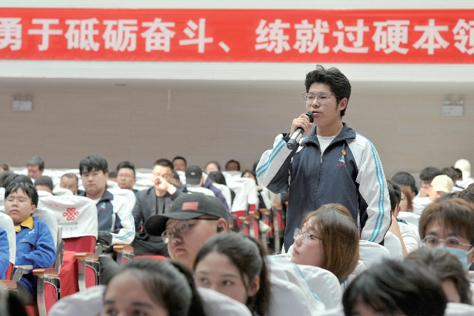 大国工匠进校园活动上,一位学生在提问。 视觉中国/供图