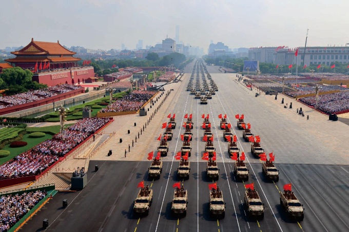 这是战旗方队和装备方队接受检阅。新华社/供图