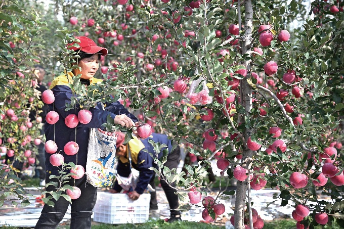 美艳的红色、清新的绿色、怡人的黄色,陕西白水苹果以美味和颜值走俏,连续8年跻身“中国果品区域公用品牌价值榜十强”。全县超八成人口吃着“苹果饭”,形成了一条年产值110亿元的产业链。