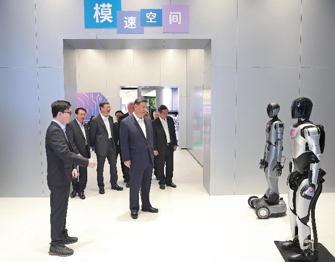 这是习近平在位于徐汇区的上海“模速空间”大模型创新生态社区,听取相关技术研发和企业生产经营介绍。新华社/供图