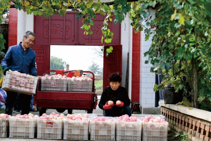 好在这些年黄陵苹果名声在外,不愁销路,果子基本上提前就被代办或村里的果商订下。如果价格不合适,就进冷库,等待更好的时机。今年的高次果价格已定,拉到院里稍加分拣便能出售。