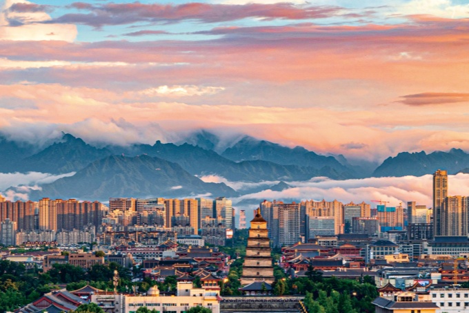 雨后初霁,中华祖脉秦岭和千年古城西安遥相辉映。
