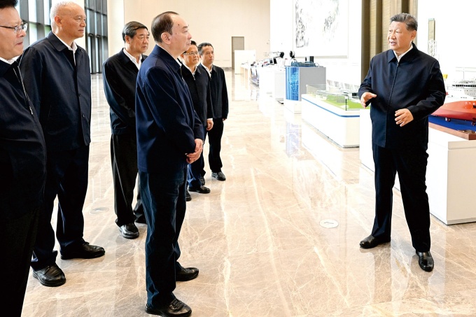 11月7日至8日,中共中央总书记、国家主席、中央军委主席习近平在广东考察。这是8日上午,习近平在广州察看广东科技创新和产业创新融合发展成果展示。新华社/供图