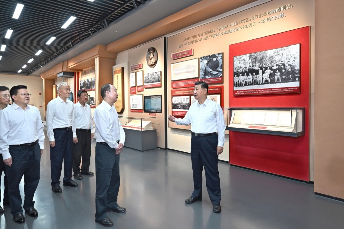 这是7日下午,习近平在位于梅州市梅县区雁洋镇的叶剑英纪念馆,参观叶剑英生平事迹陈列。 新华社/供图