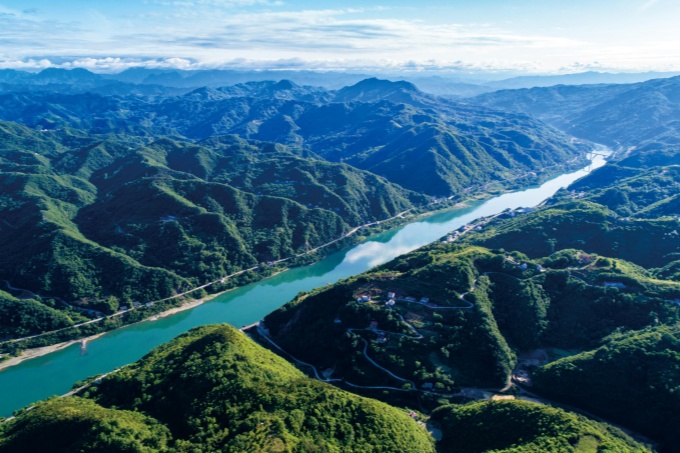 汉江,古称汉水,发源于陕西省汉中市宁强县嶓冢山,在安康域内流程三百余公里,以长江最大支流的身段一路东去。《尚书·禹贡》有载:“嶓冢导漾,东流为汉,又东为沧浪之水”“溶溶漾漾白鸥飞,绿净春深好染衣”。杜牧眼中的汉江,溶溶漾漾,澄澈碧绿。出现在史籍和诗歌中的“漾”,或许是一种引领古风潮流的流动节奏,使得汉江身披一抹青绿霓裳独炫山水T台。