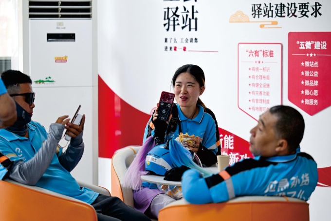 外卖员在工会驿站休息