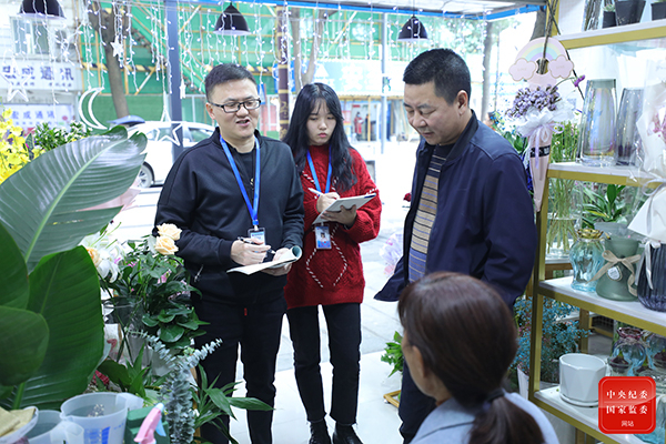 成都市郫都区纪委监委采用不打招呼、不定时间的方式开展“双随机”(随机自查、随机抽查)监督,纪检监察组通过纸条“盲抽”的方式随机抽选不同年份、不同类型的23个项目,督促业务部门自查,确保同级监督有力有效。图为郫都区纪检干部走访租户询问在国有资产招租过程中有无干部吃拿卡要问题。(四川省成都市郫都区纪委监委 阳志 摄)