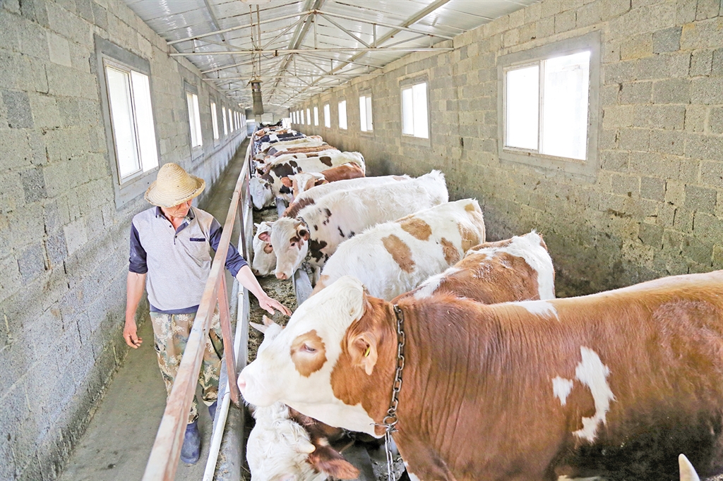 西营镇柳树村脱贫户在白河县华源畜牧现代农业园区务工。