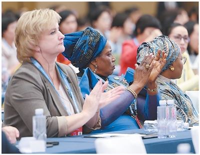 10月13日下午,全球妇女峰会闭幕式在北京举行,约800名来自110多个国家和国际组织的代表出席。新华社记者 张玉薇摄