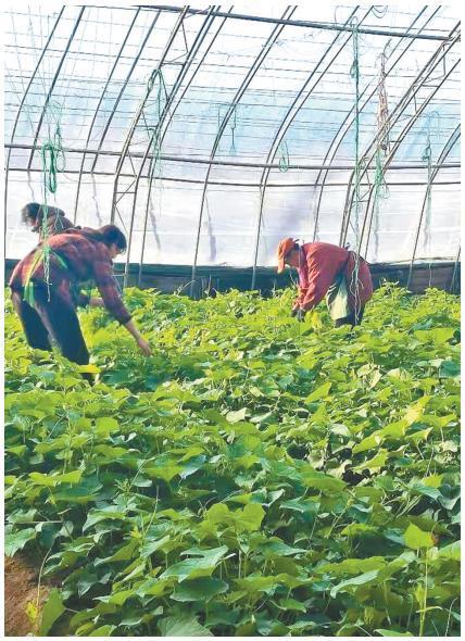 一月二十七日,韩城市西庄镇郭庄砦村的高标准温室大棚里,村民在采摘、分拣、打包龙须菜。 记者 梁少飞摄