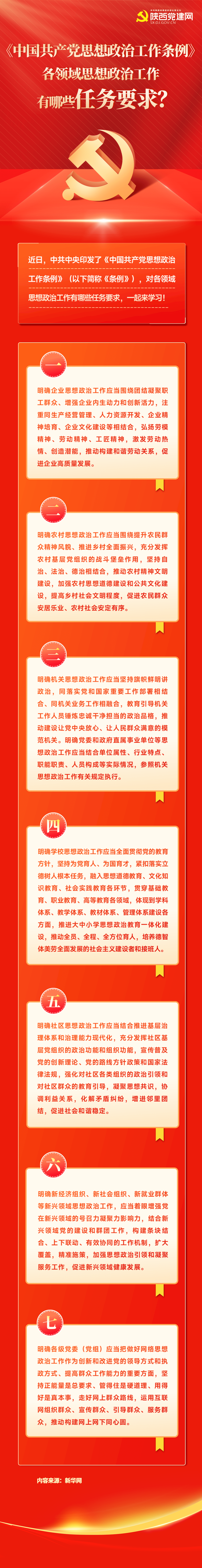 一图读懂|《中国共产党思想政治工作条例》对各领域思想政治工作有哪些任务要求?