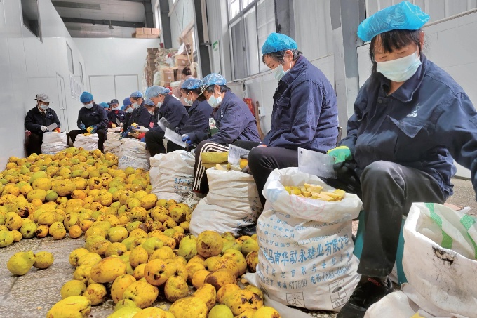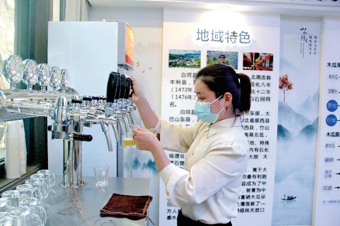 “光皮木瓜作为国家地理标志产品,是独一无二的。”白河县副县长张林冲说,那年之后,木瓜产业的发展有了突破,主要表现在加工企业稳步增多,他们各凭本事在食品、果酒、醋饮、护肤品等领域探索着、研究着,“这时,木瓜产品的销售又成了需要攻坚的问题。不像其他农业产业一样,它们的发展历程大约遵循精耕一产、做强二产、布局三产的顺序,木瓜产业恰巧相反,需要先搞好三产销售,二产才会强劲,一产就能可持续发展。”