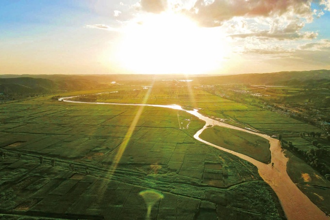 这条河,在黄土高原和绿地草原上做了个柔美的转身,画了一道弯弯的曲线,然后像是早已有了梦中所向,没有犹豫,坚定地由北向南畅快而去。
