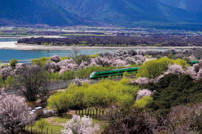 复兴号列车穿行在拉林铁路林芝段