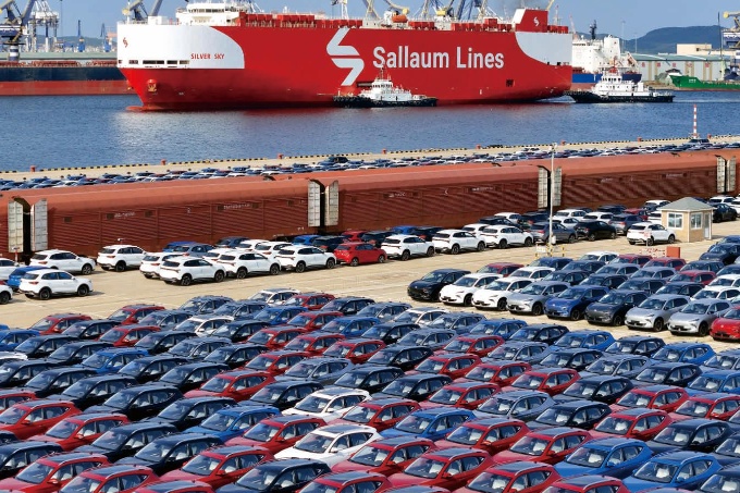 国产汽车在烟台港集结等待装船出口