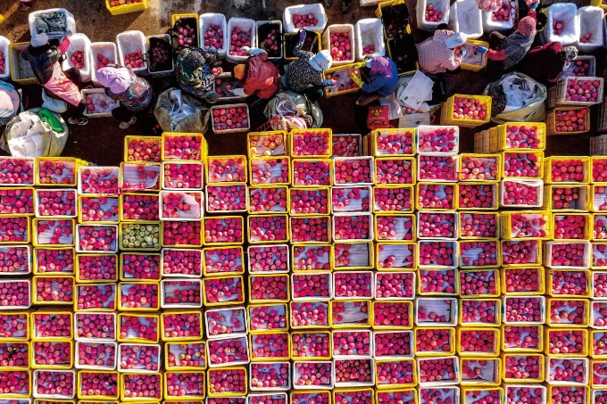 好在这些年黄陵苹果名声在外,不愁销路,果子基本上提前就被代办或村里的果商订下。如果价格不合适,就进冷库,等待更好的时机。今年的高次果价格已定,拉到院里稍加分拣便能出售。