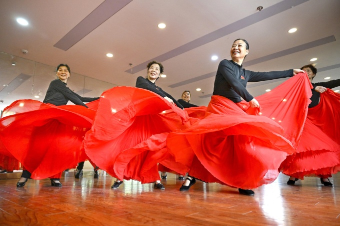 老年大学的学员们练习舞蹈