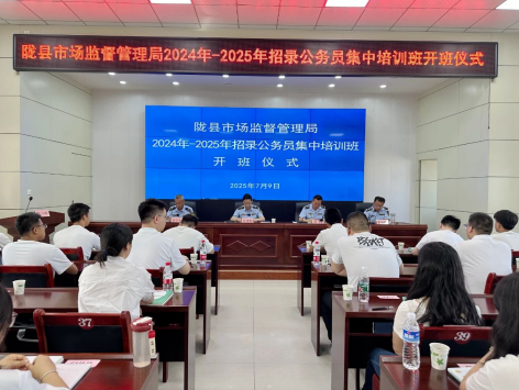 7月9日,陇县市场监督管理局新招录公务员岗前培训班正式开班。开班式上,新招录公务员作了自我介绍,集体学习了习近平关于年轻干部的重要讲话重要指示精神、《中华人民共和国公务员法》和《关于加强新录用公务员试用期培养管理工作的意见》,宣读了培训纪律,主要领导作了动员讲话。培训确定13天时间,设置了室内授课、视频教学、外出参观、军事训练等多个培训环节,内容涵盖了陇县县情、业务知识、法律法规等各个方面。