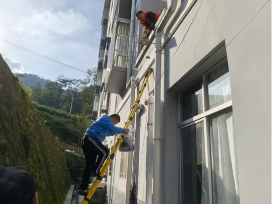 渐渐地,闻讯赶来的居民也加入了清理队伍。住在5组的李读学拿着抹布一边擦拭栏杆,一边感慨:“之前总觉得水压小,没想到是出水口堵了。你们真是帮我们解决了大问题!”在他的带动下,更多居民从家中拿来扫帚、水桶等,齐心协力参与到清理工作中。