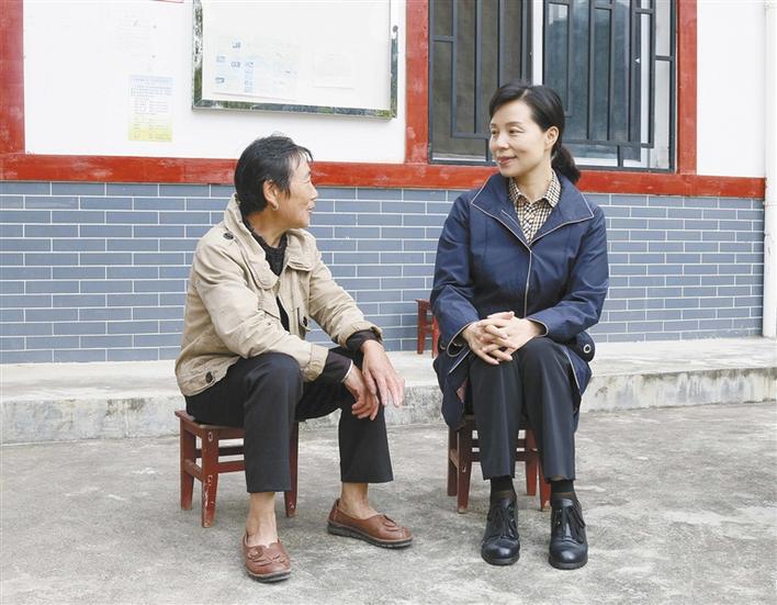 李芳(右)在长角坝镇沙坝村走访慰问贫困群众。 本报通讯员 龚莉摄