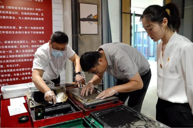 “用铁笔刻上文字,然后再把刻好的蜡纸贴在油印机的纱网上,用蘸着油墨的滚子,一压一滚,一张一张印制出来……以前虽然参加过一些红色文化活动,但像这种沉浸式体验,还是第一次。”参观者王先生表示,等正式开放以后,会带着孩子一起再体验一次。