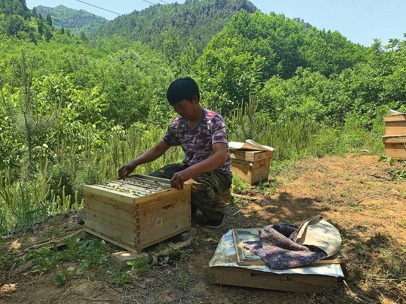 共裕村贫困户王纪民在中蜂产业园工作。