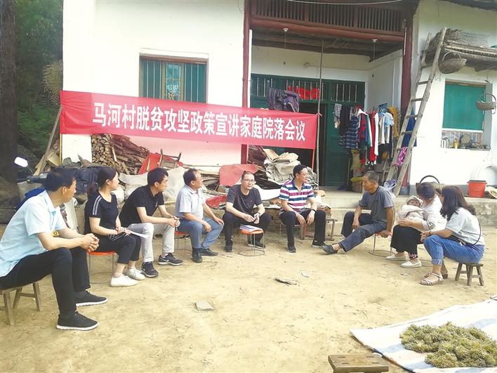 6月18日傍晚6时,洛南县四皓街道马河村清凉而宁静,而位于村西头的贫困群众郝海潮家的院子里却特别热闹。洛南县委宣传部的驻村包扶干部按照惯例,正在召开“院落会议”。小小的院子里,摆放着板凳和茶水,七八名包扶干部和周边几户贫困群众围坐在一起,热烈地讨论着、憧憬着,掌声不时地从小院里传了出来。