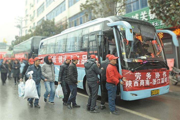 商南县为外出务工群众提供免费接送巴士。 陕报记者 郭诗梦摄