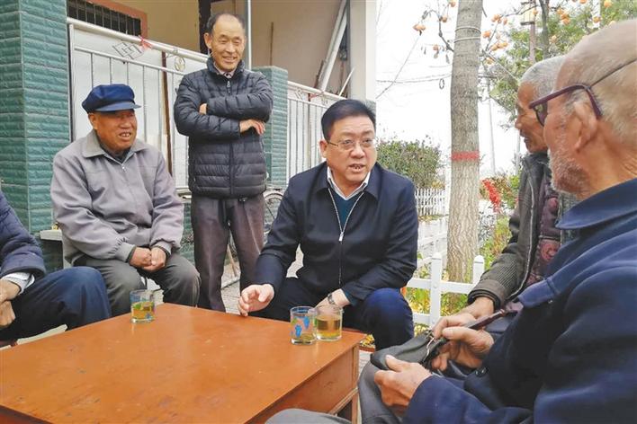 10月31日,高玉峰(左三)在土桥镇镇头村与村民交谈,了解脱贫增收情况。