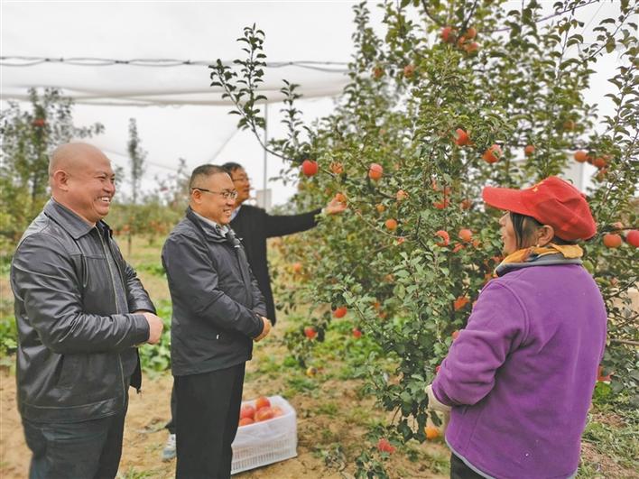 王国忠(左二)调研山地苹果产业发展情况。 陕报记者 赵波摄