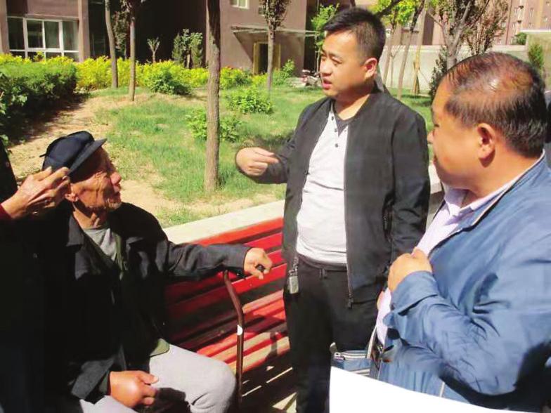 刘建飞(右二)向村民了解村情民意。
