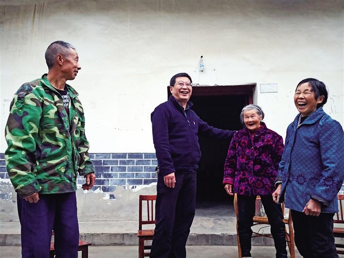 周康成(左二)经常在蜡烛村和老百姓拉家常。