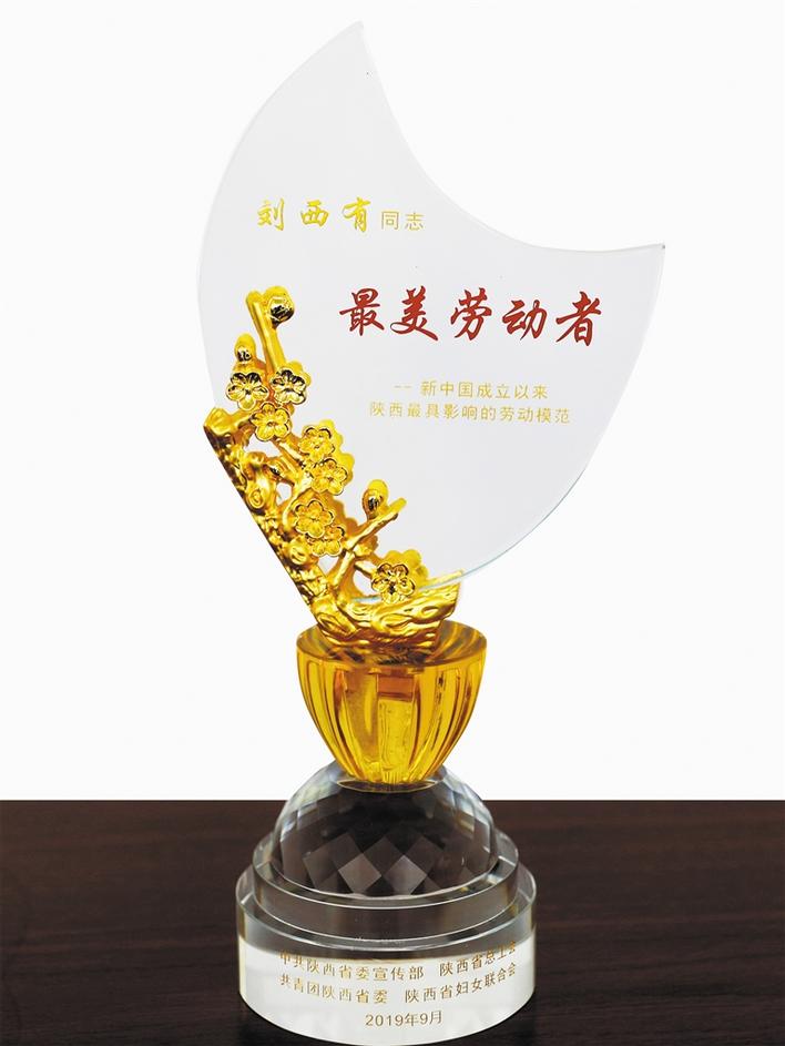 最美劳动者奖杯。