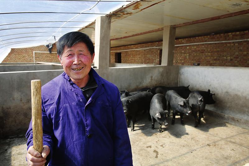 定边县新安边镇店子坪村高占发养猪脱贫。(周鑫俞 摄)