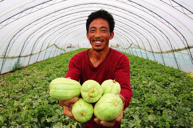 2019年6月18日,定边县红柳沟镇沙场村村民罗鹏山收获香瓜。(周鑫俞 摄)