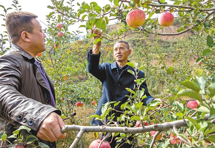 凤阁岭镇建河村村民采摘优质苹果。
