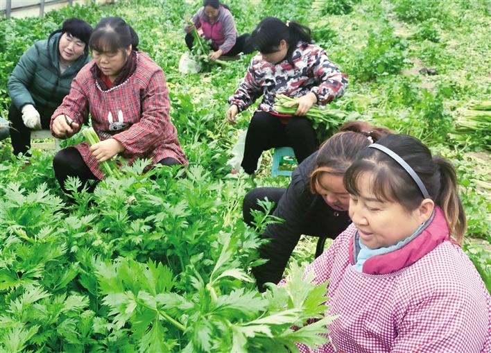 11月27日,贫困群众正在位于汉滨区建民办忠诚村的陕西安康天瑞塬生态农业有限公司采摘芹菜。据悉,贫困户在该公司务工每月有2400元收入,加上土地流转和反租倒包所得,年收入达到7万元。 陕报记者 申东昕摄