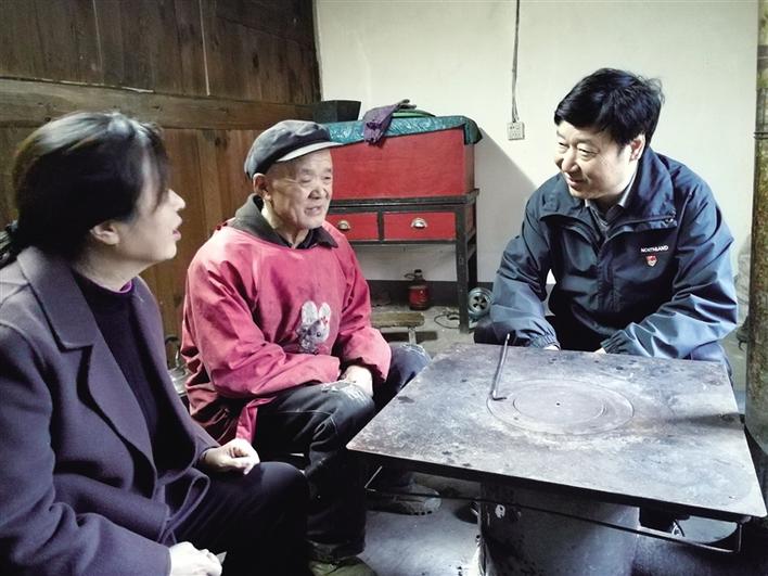 张益民(右一)正在贫困户家里走访。 本报记者 张权伟摄