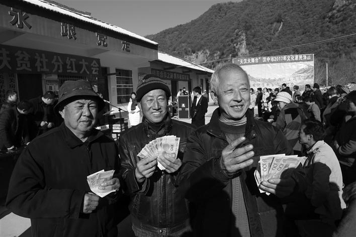 留坝县玉皇庙镇关房子村贫困户喜领扶贫社分红。 陕报通讯员 刘宣摄