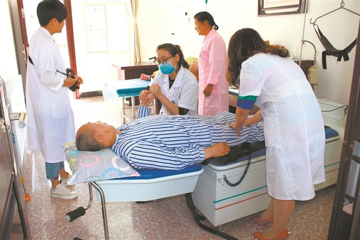 汉阴县养护中心工作人员正在为老人理疗。