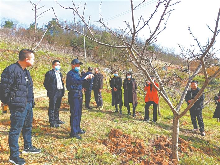 技术专家现场为涧池镇村民培训果树栽植技术。