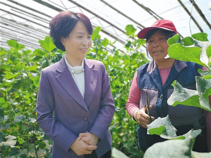“您上次来看的这茬瓜苗结瓜了,您尝尝!”看见严晓慧走进大棚,白豹镇王湾村村民宗彩艳顺手把摘下的甜瓜递过去,脸上挂着憨厚的笑容。