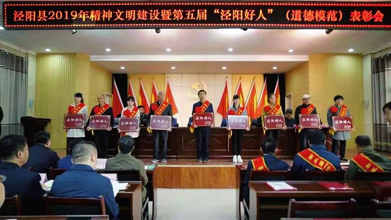 自2011年以来,泾阳县先后评选表彰“泾阳好人”(道德模范)68人、“十大孝子孝媳”“十佳公婆”等200人。积极开展“好人365”线索推荐工作,不断发现身边“好人”、弘扬“好人”精神,涌现出了一大批道德标杆。扶困助残、捐资助学累计千万元的企业家王永安,病榻前长年照顾患病岳父岳母的孝老爱亲典范吴礼斌,先后荣登“中国好人榜”;陈峰珍等3人荣获“陕西省道德模范”荣誉称号;马红艳、李爱琴等7人荣获“咸阳市道德模范”;宋凯、全江等11人荣登“咸阳好人榜”。