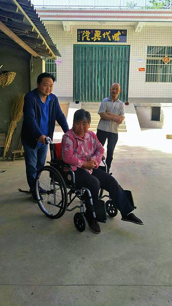 张鹏推着残疾户去体检。
