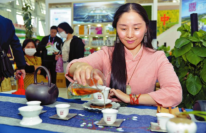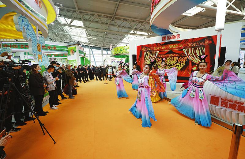 农高会上西咸新区在推荐农产品时进行舞蹈表演。